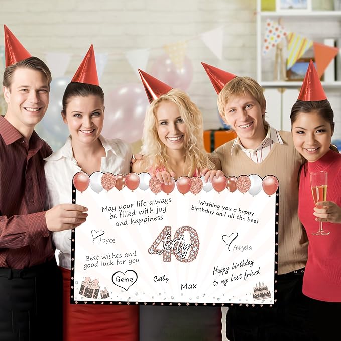 - [Unforgettable Birthday Souvenir] - You can use the 40 birthday giant guest book to collect blessings and signatures in advance, fold up and store it in an envelope, and pass on blessings from friends to you