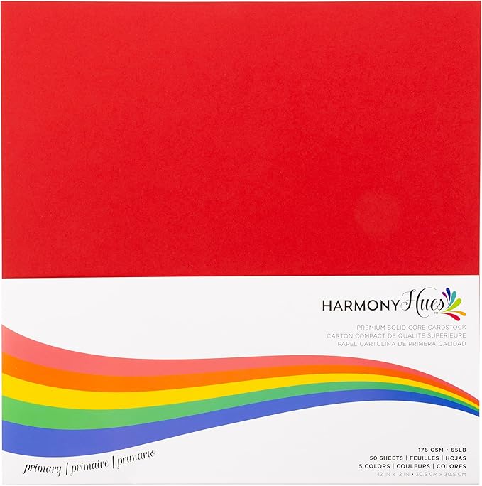 Cardstock 12 x 12 Paper Pack - 65lb Smooth Card Stock for Crafts, Cardmaking, Art Projects - 50 Square Scrapbook Sheets, 5 Assorted Colors - Double Sided with Solid Core, Primary