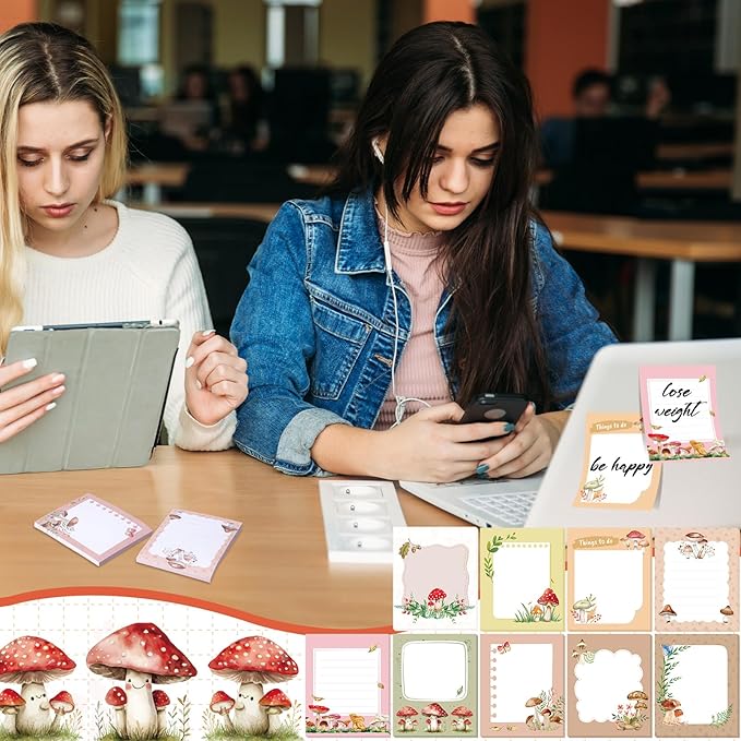 - Mushroom Patterns: these mushroom sticky note pads adopt aesthetic mushroom design, exquisite and beautiful, so that you can feel the pleasure brought by mushrooms, bringing joy to your daily use
