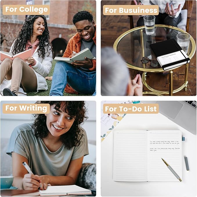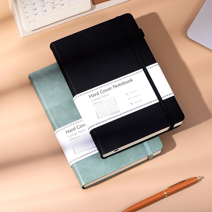CAGIE 2 Pack Notebooks Journals for Women Men Hardcover A5 Journaling Notebooks Leather Journals for Writing Thick Journal Supplies Diary, Green& Black