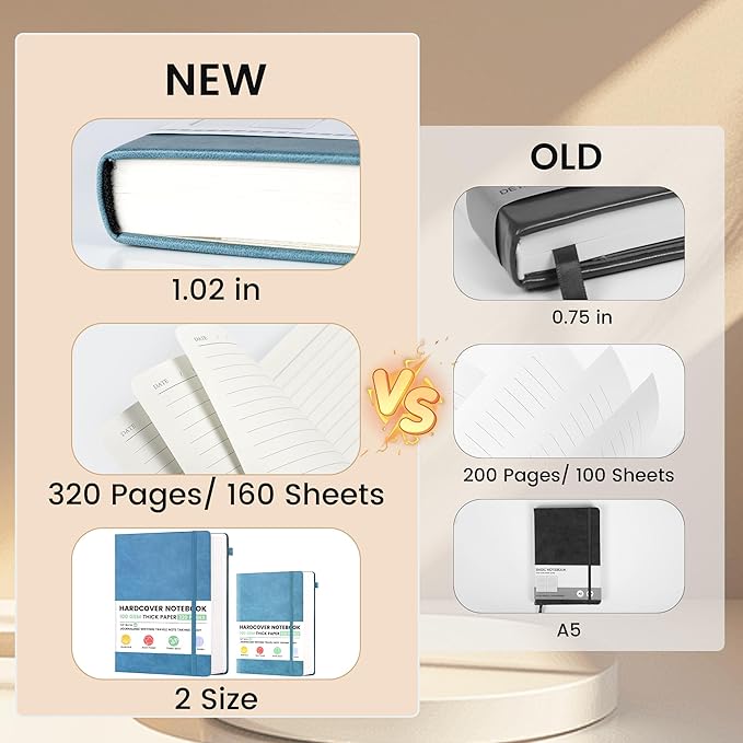 CAGIE 2 Pack Journals Notebooks for Women Men Leather Journals for Writing Hardcover A5 Journaling Notebooks Thick Journal Supplies Diary, Black& Blue