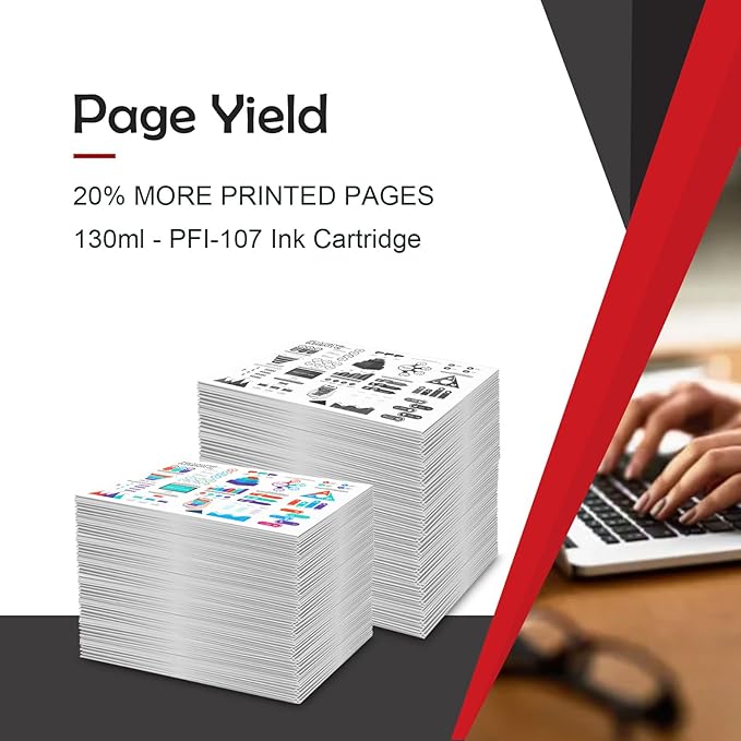 - Excellent Printing Performance: PFI107 Ink cartridges print crisp and clear, providing vibrant colors and deliver crisp text.