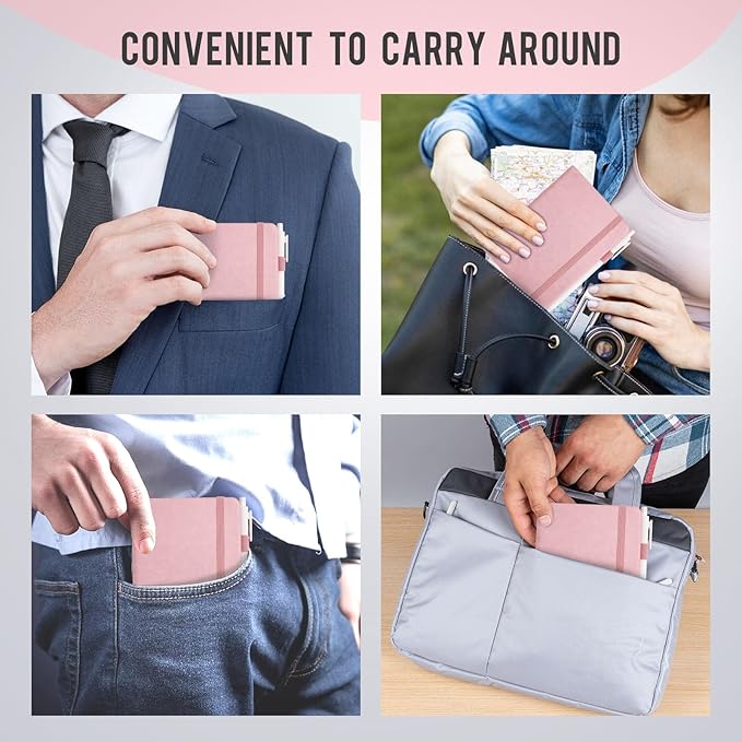- 【Ultra-Portable Design】Measuring 3.7x5.7 inches, these small notebooks fit effortlessly into pockets or bags. The 180-degree flat design ensures an optimal user experience for you. Perfect for commuting, traveling, or quick notes during meetings, they never add bulk