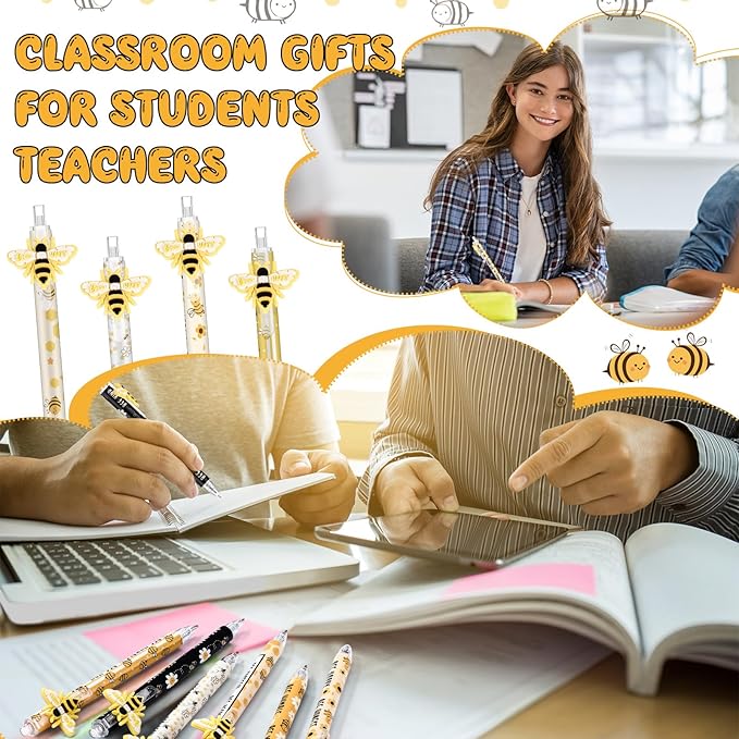 - Cute and Inspirational Gifts: our yellow bee pens are designed in 6 different styles, and each pen is printed with motivational statements and cute bee patterns, bright in colors, unique in styles, which will add a gloss to the desktop and pencil case
