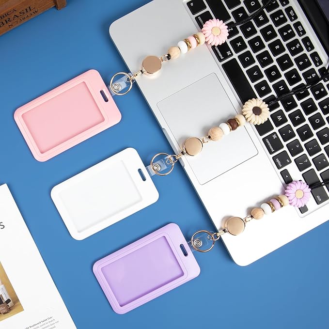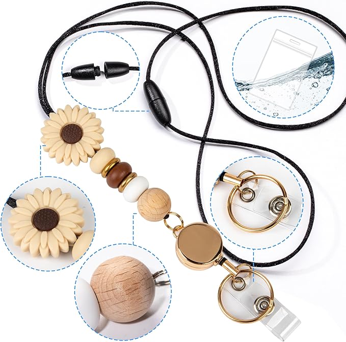 - Durable and Reliable Materials: The beaded ID lanyard is made from high-quality silicone and wooden beads, equipped with a sturdy alloy rotatable buckle. Its contemporary daisy design adds a stylish touch to your everyday attire