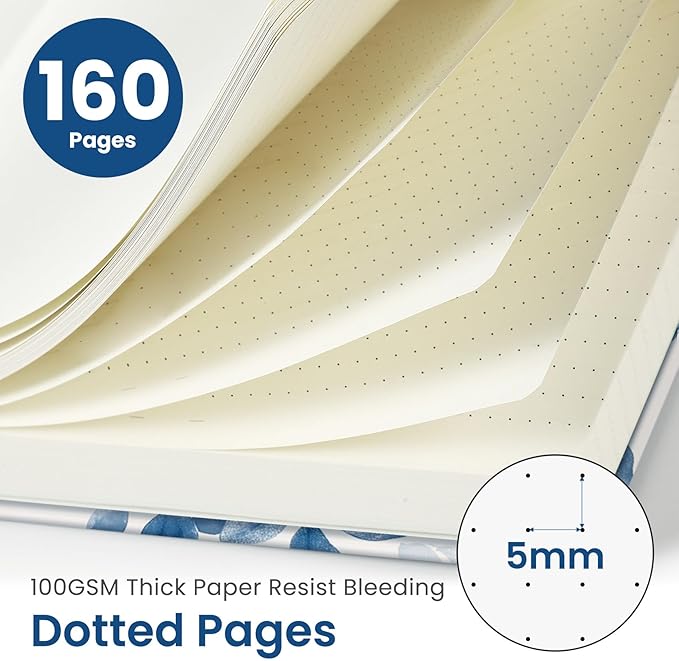 - 160 Pages Dotted Journal: Discover the freedom of 5mm-spaced dotted pages, perfect for bullet journaling, sketching, and organizing. The subtle dot grid provides structure without limiting creativity, helping you easily design layouts, track goals, and develop ideas in your personal style.