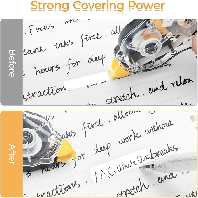 - Compact & Ergonomic Design: This correction tape features an ergonomic design. Its shape is carefully crafted to fit comfortably in your hand, ensuring a natural and easy grip, reducing hand fatigue even during extended use.