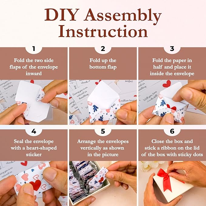 - Set Include: This set includes 60 love notes for her or him, 60 envelopes, 1 elegant love note box, 1 ribbon, and glue dots for sealing, ensuring every detail feels special.