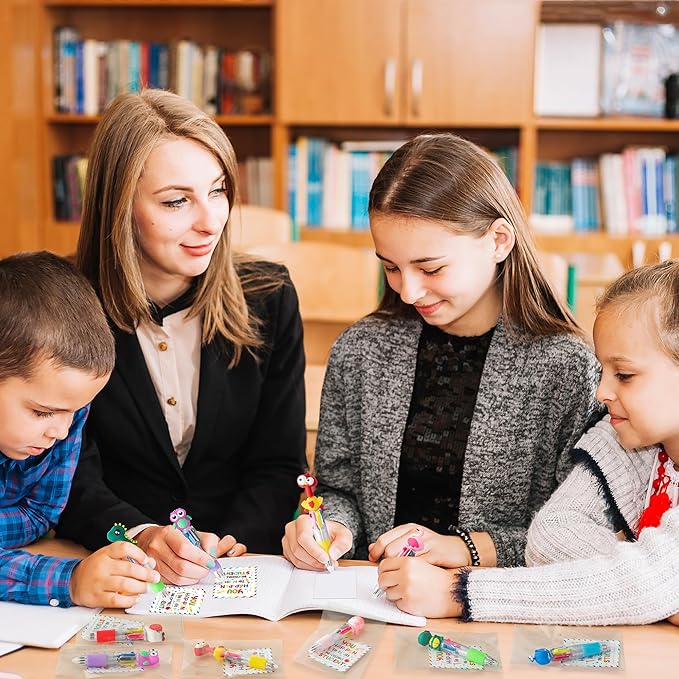 - What You'll Receive: This includes 28 animal-shaped ballpoint pens in four vibrant colors, with each of the 7 animal designs available in 4 pens.Additionally,you'll get 28 end-of-year encouragement cards featuring the uplifting message "You happen to be an incredible student," along with 28 OPP resealable bags for easy organization and gifting. This complete set is designed to celebrate and inspire students