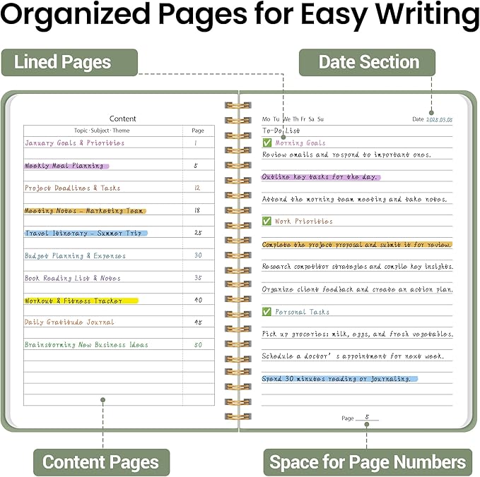 - PERFECT FOR EVERY USE: This lined journal is incredibly versatile—ideal for jotting down notes, keeping a daily journal, organizing ideas, or setting goals. Whether you're at school, work, or just reflecting on your day, it's the perfect companion for any occasion.