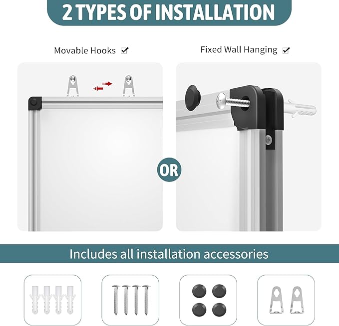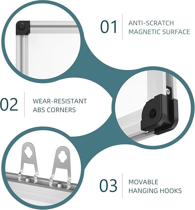 - 【Great Accessories】: Magnetic Eraser, 2 Markers, Detachable Marker Tray, 6 Magnets, High-grade sturdy aluminum frame built with ABS plastic corners, with no sharp or pointed edges
