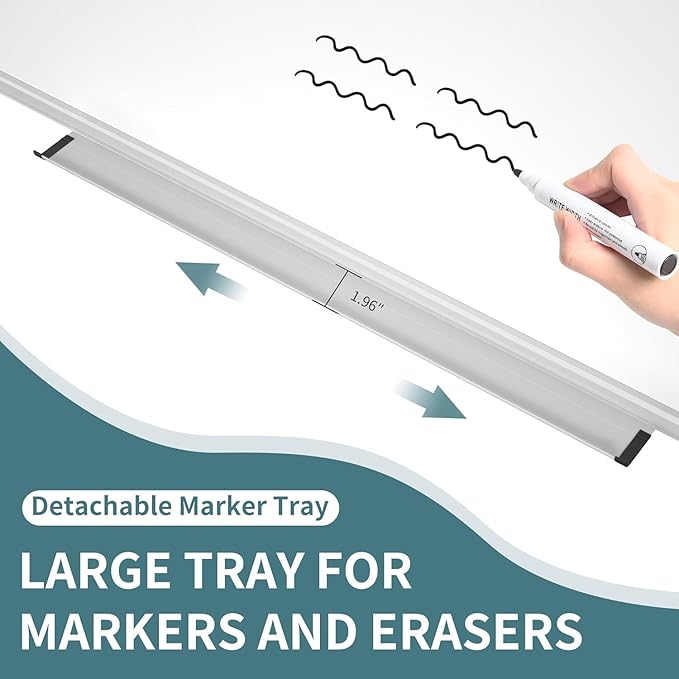 - 【Easy to Install】: Mounted vertically or horizontally just as you like, the detachable free marker tray can be placed on any of the board's 4 sides
