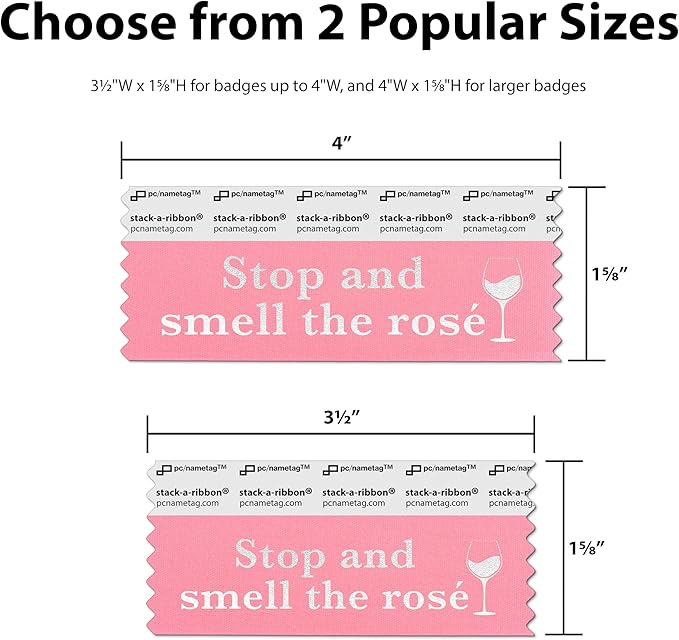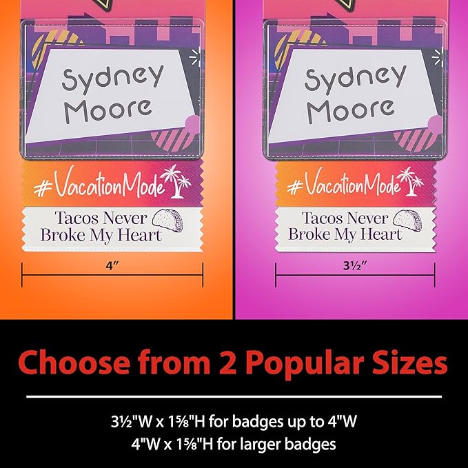 - VARIETY OF SIZES: Choose the fit that fits your needs with our two sizes of horizontal badge ribbon. Whether you prefer our most popular conference size of 4 x 1-5/8" or a smaller 3-1/2 x 1-5/8" size, these badge ribbons have you covered.
