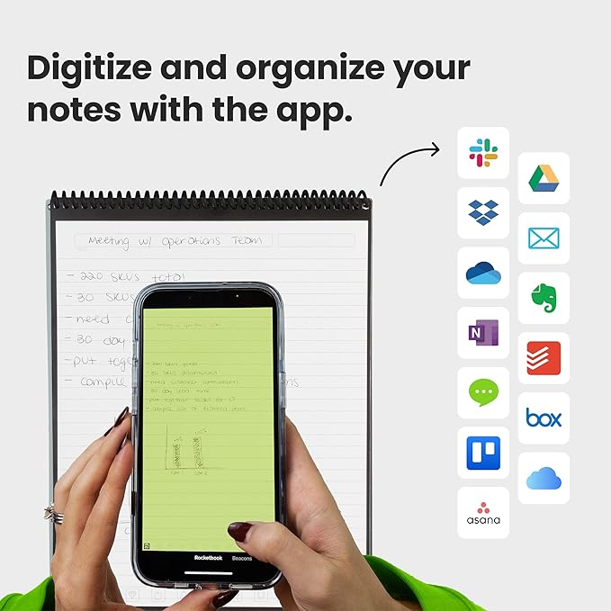 - CLOUD COMPATIBLE - All handwritten notes can be saved to the free Rocketbook app and easily transfered to your cloud service of choice including Google Drive, Dropbox, Evernote, OneNote, Slack, iCloud, and more