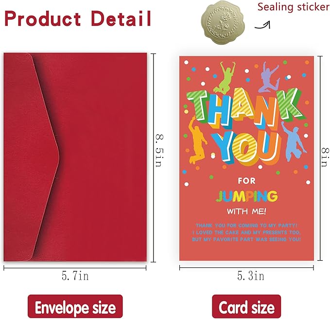 Jump Birthday party thank you card Trampoline Party Thank you note Bounce house party