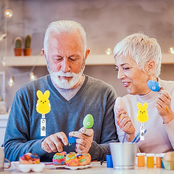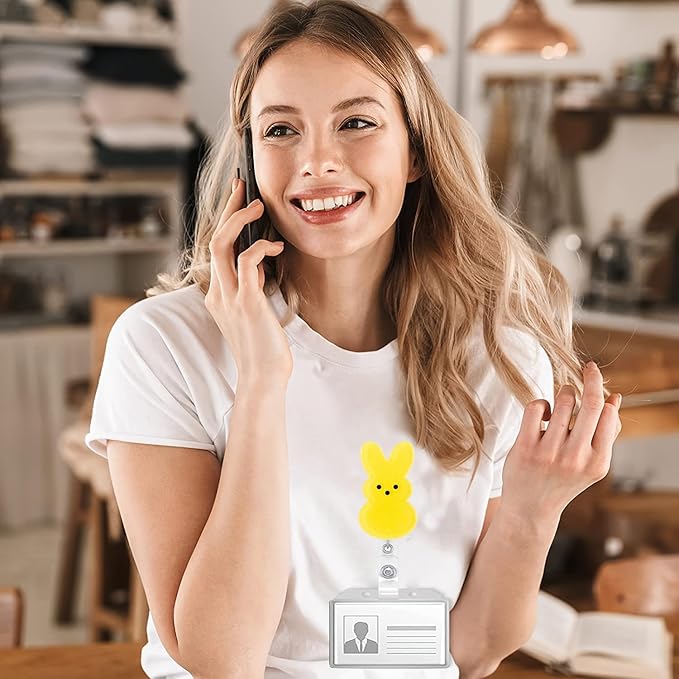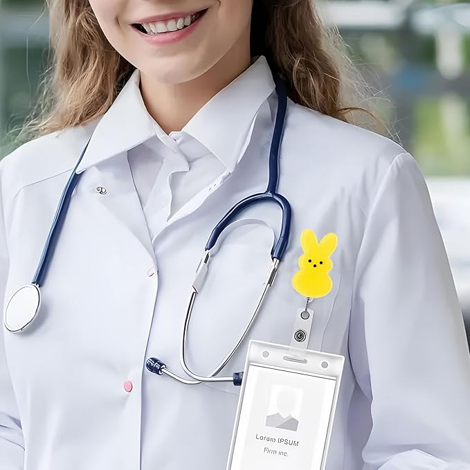 Bunny Badge Reels Easter Badge Holder Yellow Rabbit Nurse Badge Reel ID Name Alligator Acrylic Clip Cute Easter Gift for Nurse Office Employee Name Badge