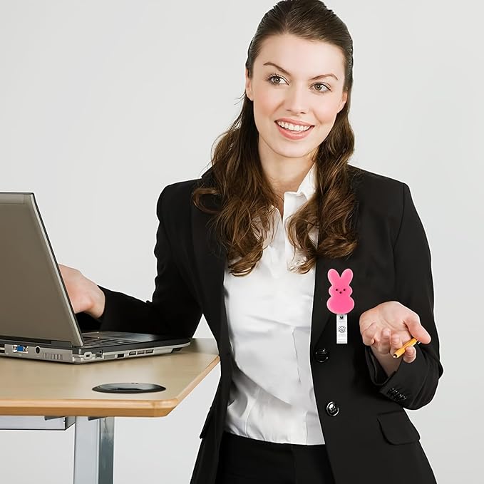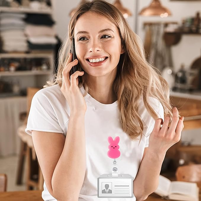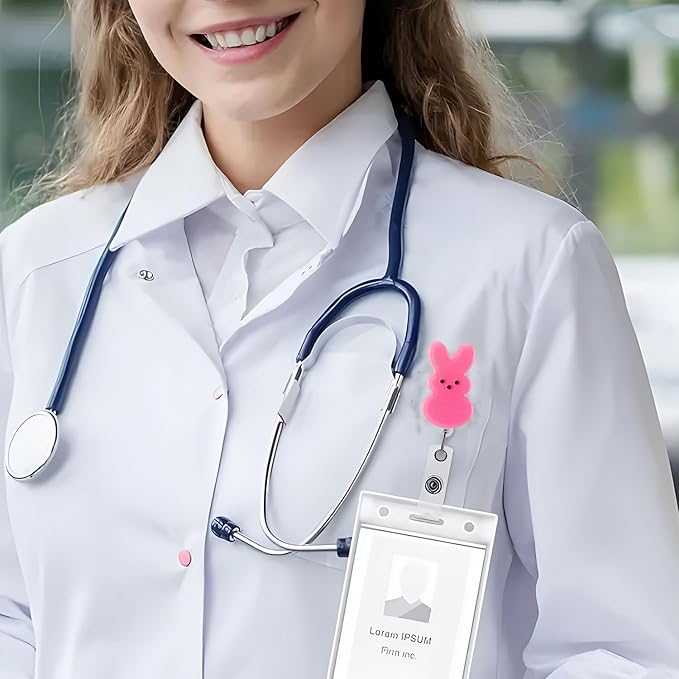 Easter Badge Reels Nurse Badge Reel,Funny Badge Reel,Cute Pink Bunny ID Name Badge Holder Full Cover Retractable Acrylic Clips for Office Teacher Student Nurse Doctor